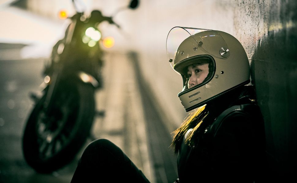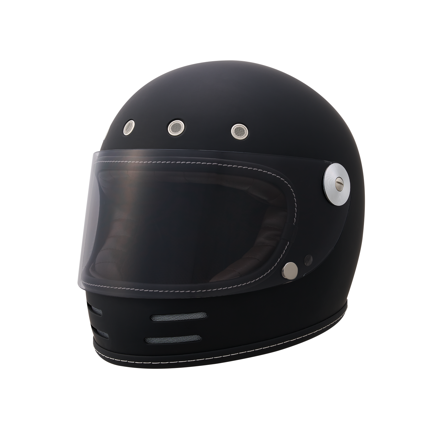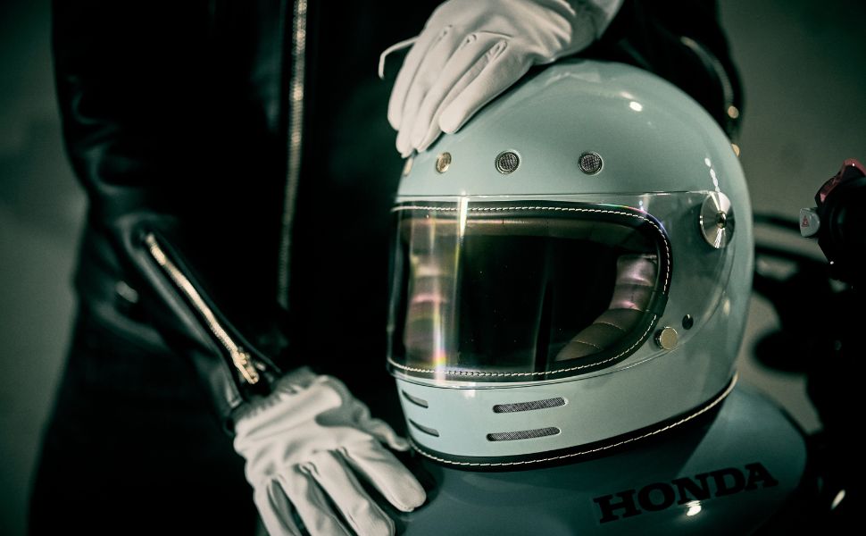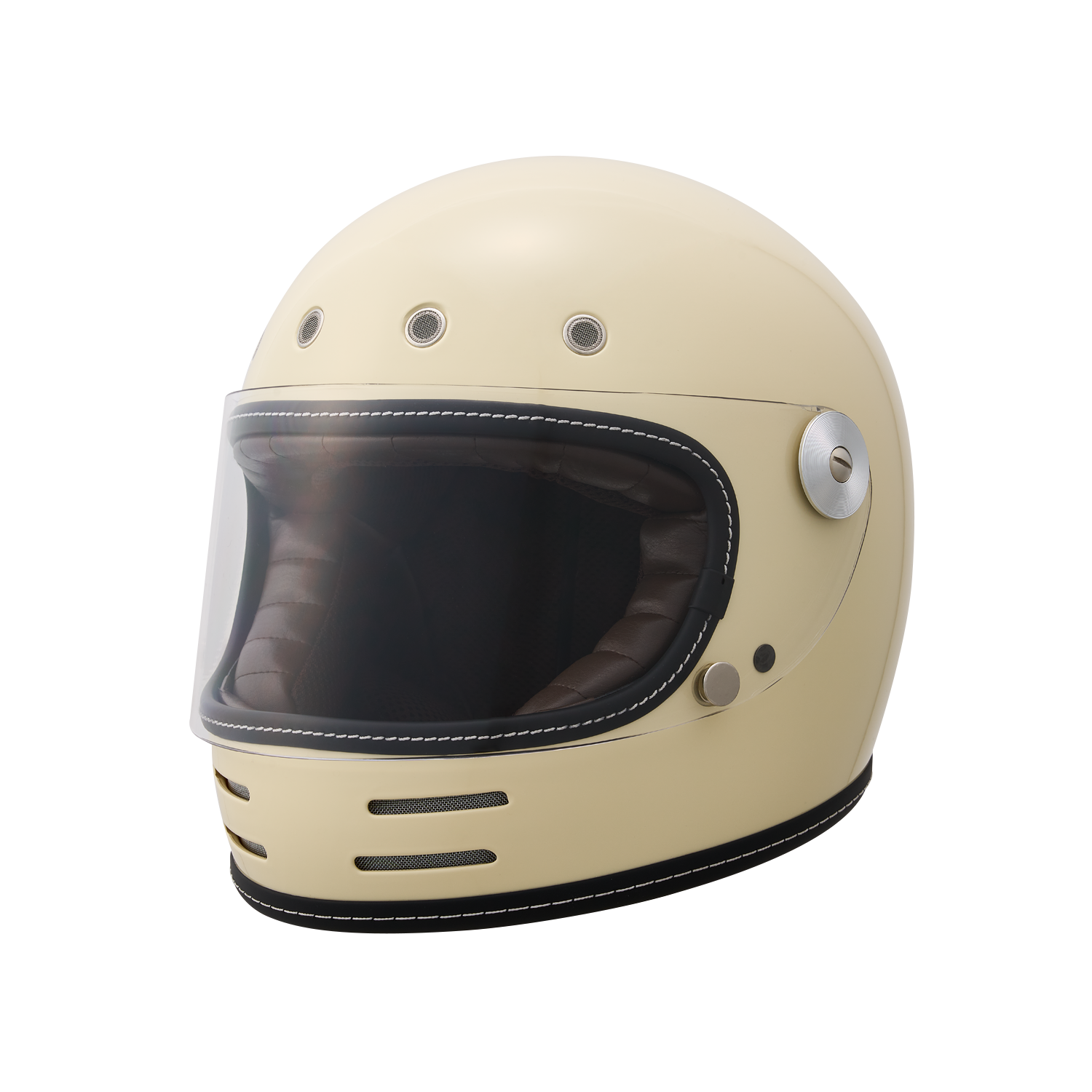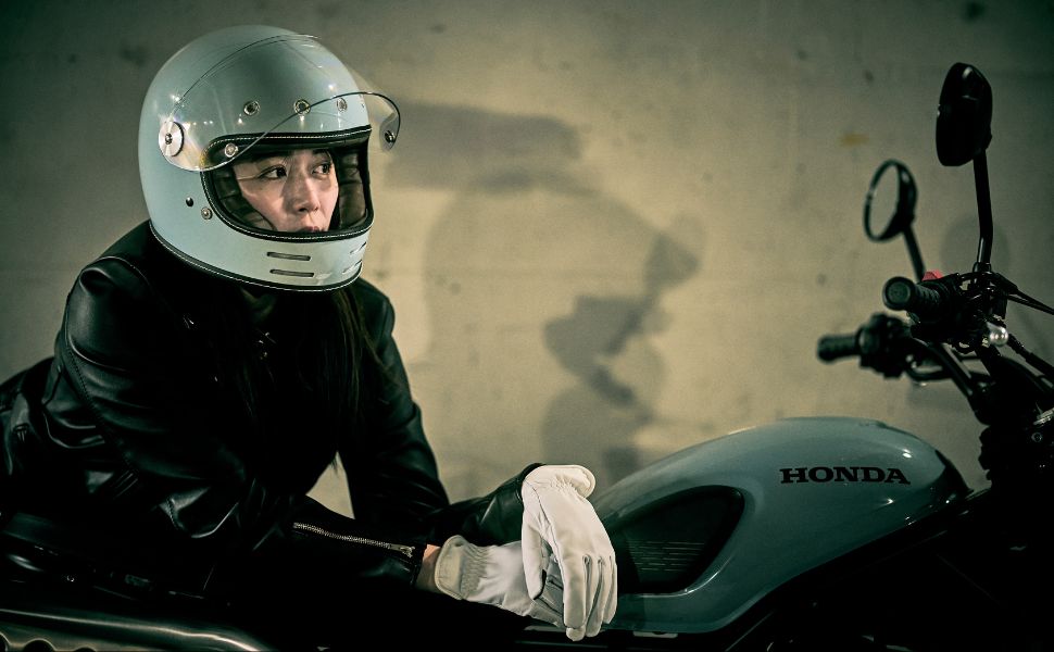 フローティングマグネット機構、アルミ削り出し風シールドホルダー、タックロール調のブラウン内装など、ディテールと実用性にこだわり抜いたネオレトロフルフェイスヘルメット。