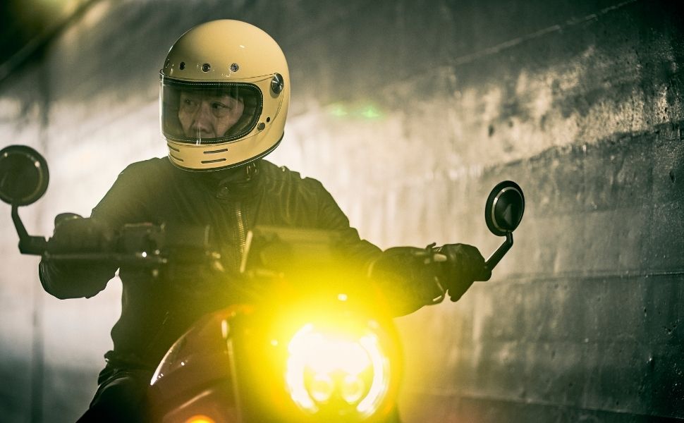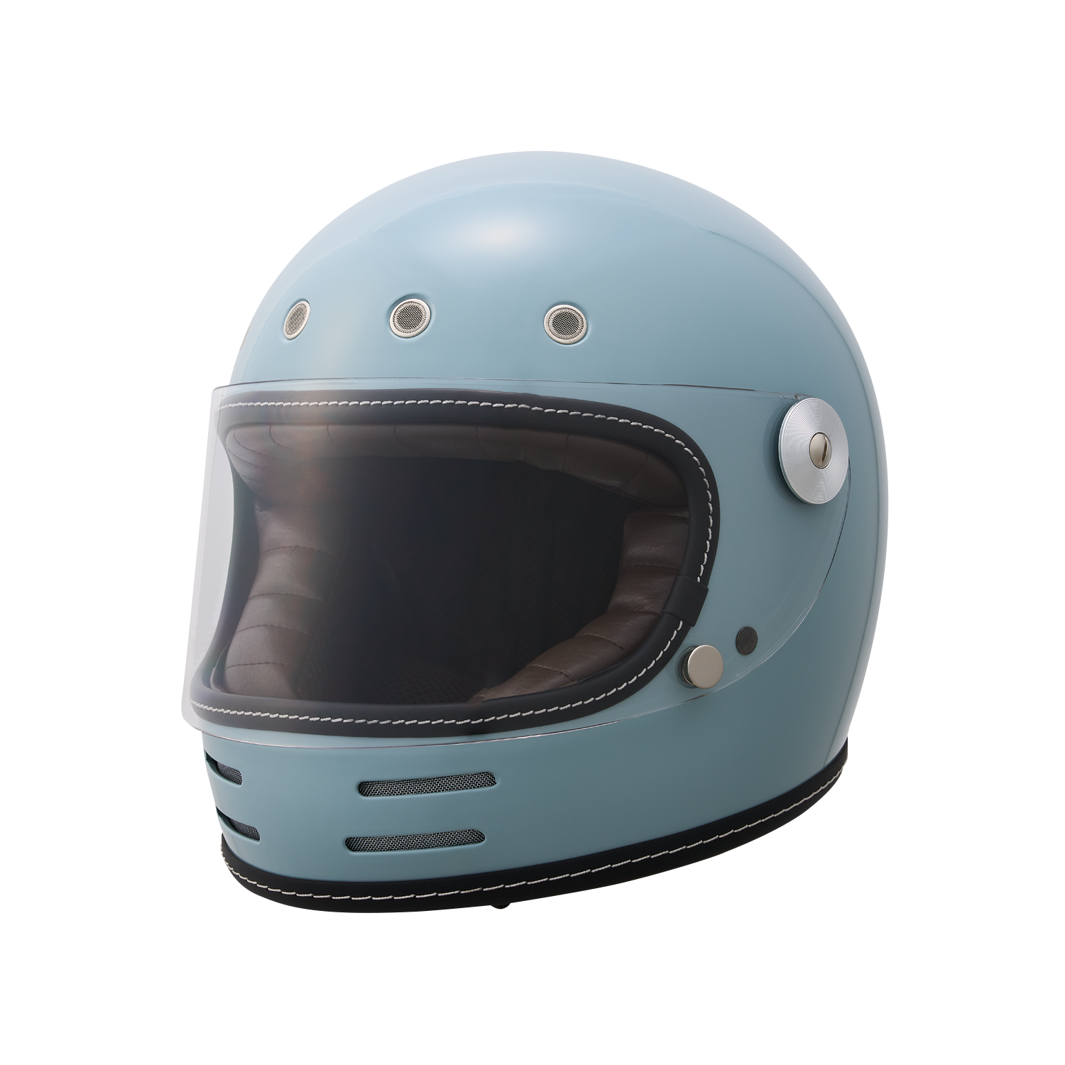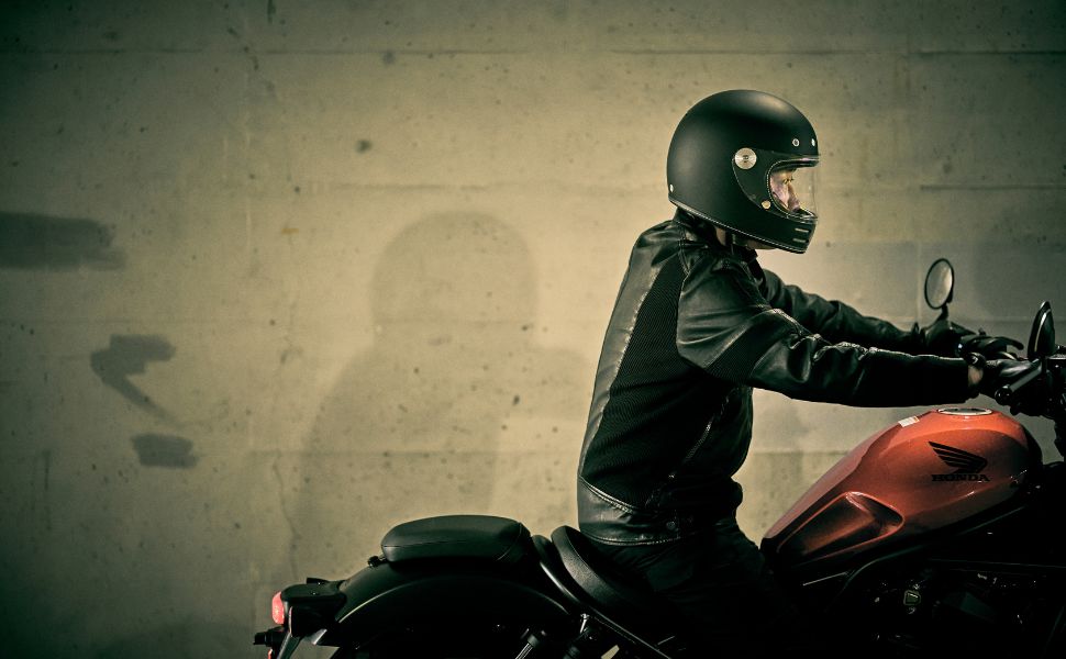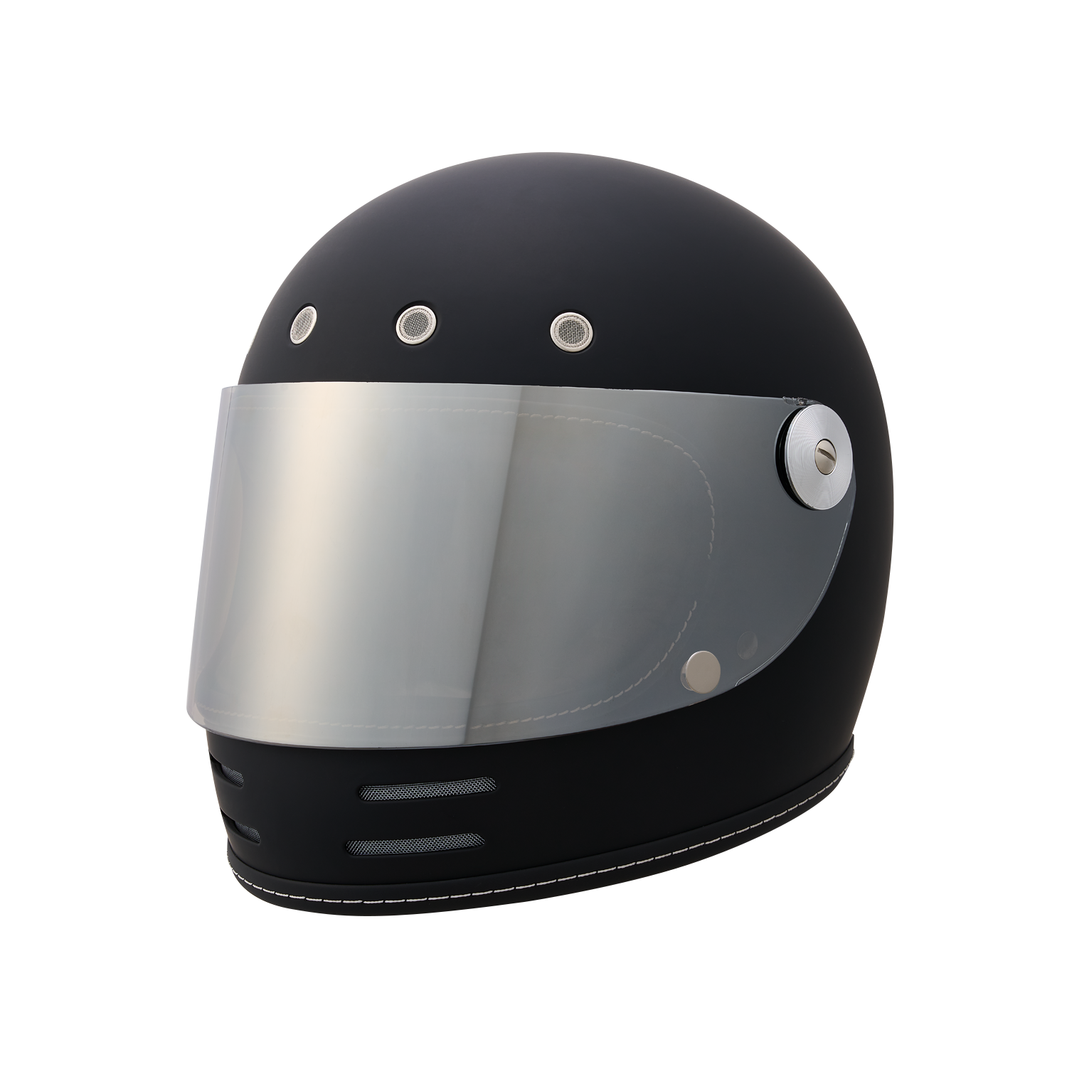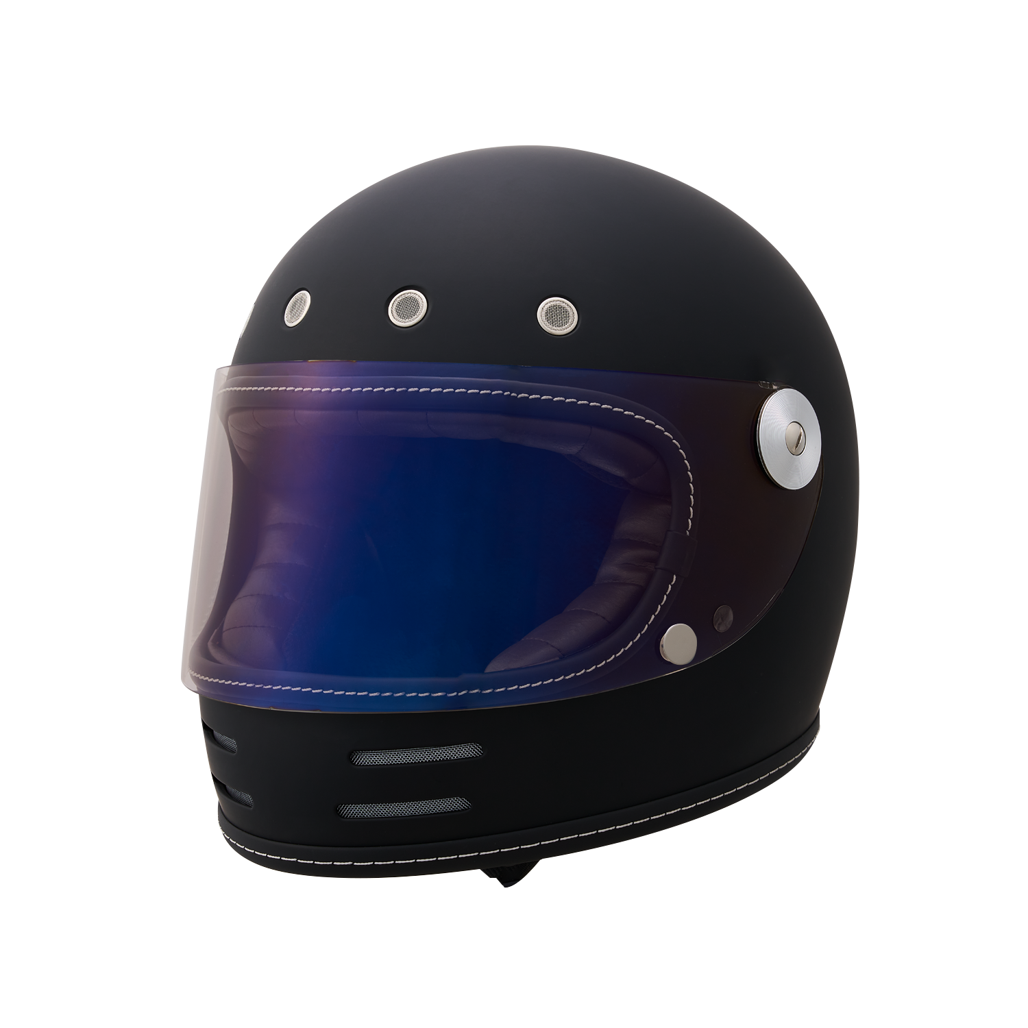 フローティングマグネット機構、アルミ削り出し風シールドホルダー、タックロール調のブラウン内装など、ディテールと実用性にこだわり抜いたネオレトロフルフェイスヘルメット。