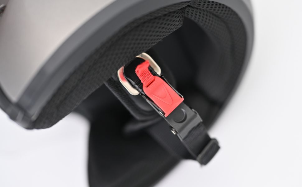 スムーズな着脱を可能にするラチェット式バックルを採用。あご紐の長さを一度調整しておけば、毎回の装着はラチェット部分を差し込むだけでOK。脱ぐときも、赤いストラップを引くだけで簡単に解除できる構造で、グローブをしたままでも扱いやすい設計です。忙しい通勤時や、乗り降りの多いシーンでも素早く脱着ができ、ストレスなくヘルメットを使いこなせます。普段使いに便利な実用性の高い仕様です。